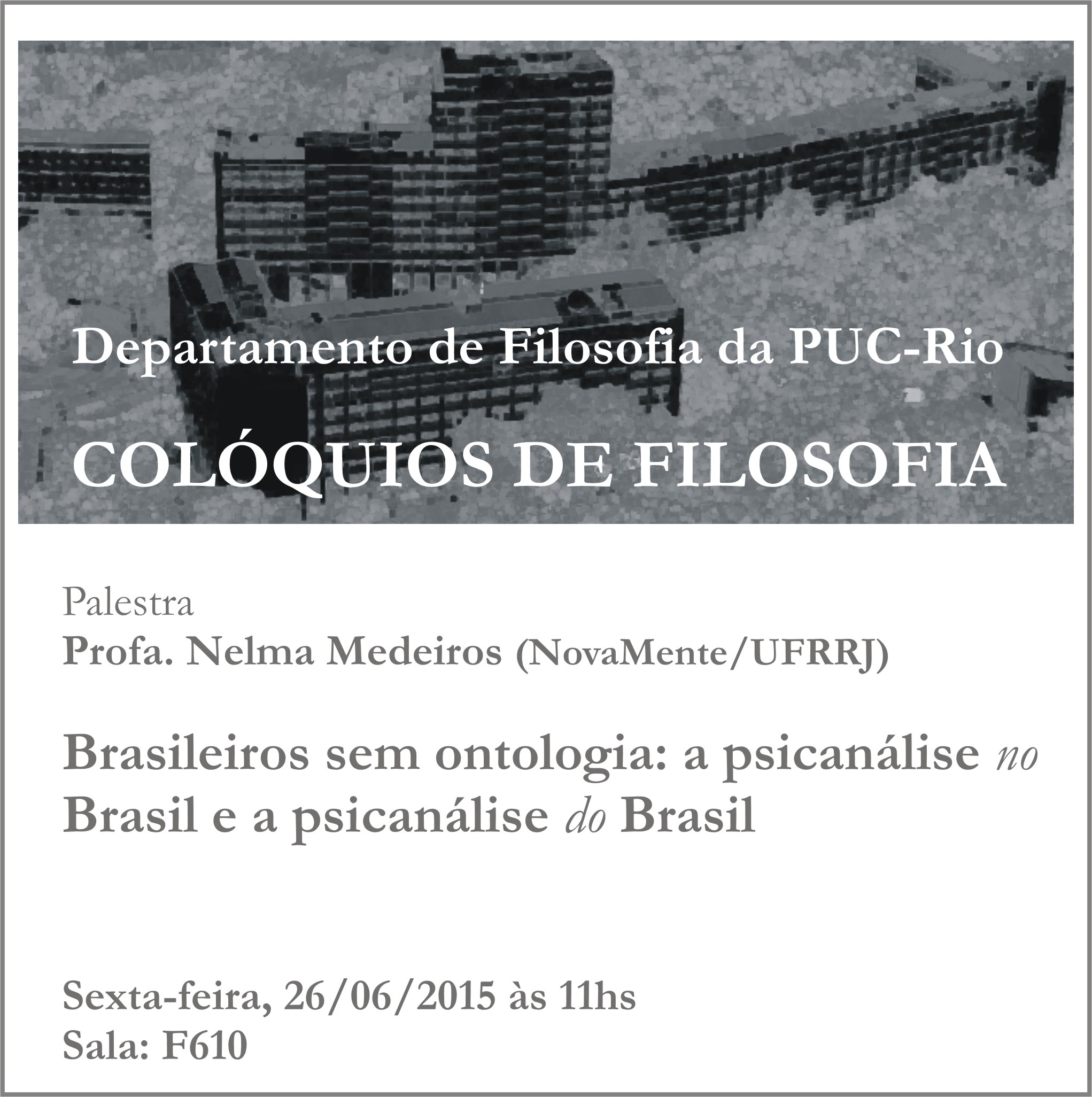 | Palestra apresentada dia 26 junho 2015 no Depto. de Filosofia da Puc-Rio. |
