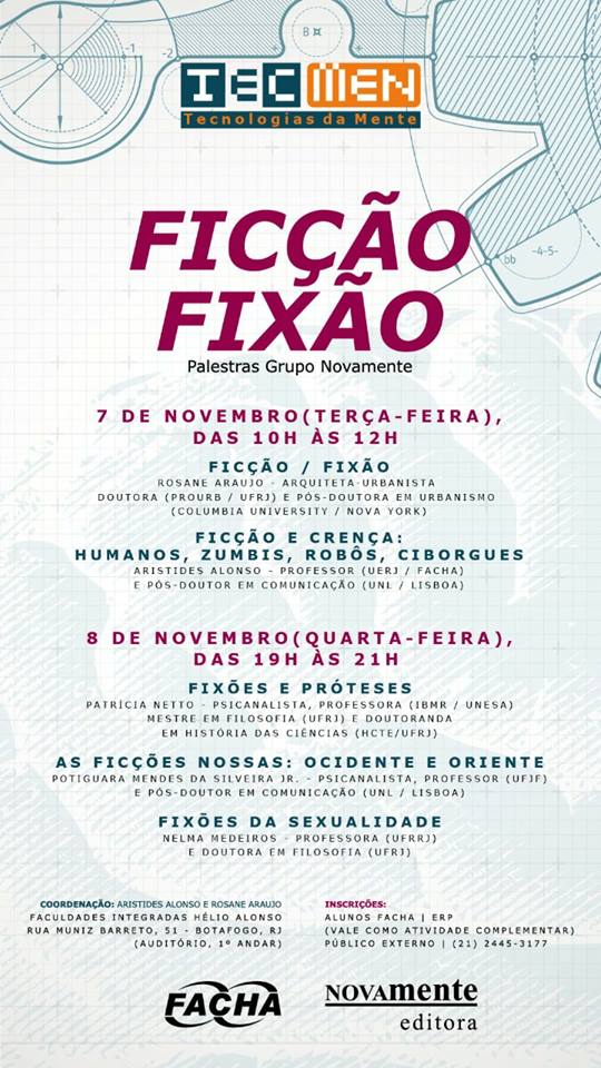 | 17o Ciclo de palestras do TecMen - Tecnologias da Mente, realizado na FACHA - Faculdades Integradas Hélio Alonso, 07 e 08 novembro 2017. |