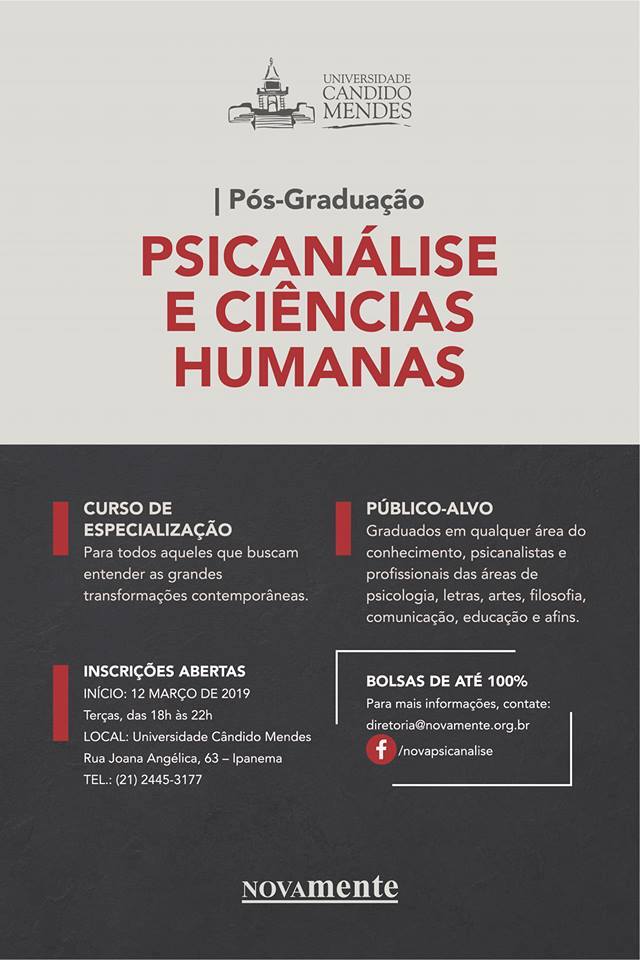 | PÓS-GRADUAÇÃO: PSICANÁLISE E CIÊNCIAS HUMANAS |