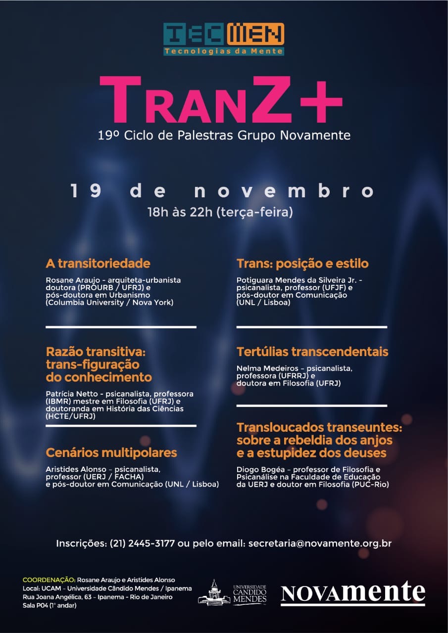 | 19o Ciclo de palestras do TecMen - Tecnologias da Mente, realizado na UCAM - Universiadade Candido Mendes, 19 novembro 2019. |