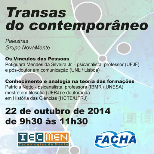 | Ciclo de palestras do TecMen - Tecnologias da Mente Projeto de extensão da UERJ - Dep. de Programas e Projetos de Extensão - DEPEXT/SR-3) realizado na FACHA - Faculdades Integradas Hélio Alonso, 22 out 2014. |